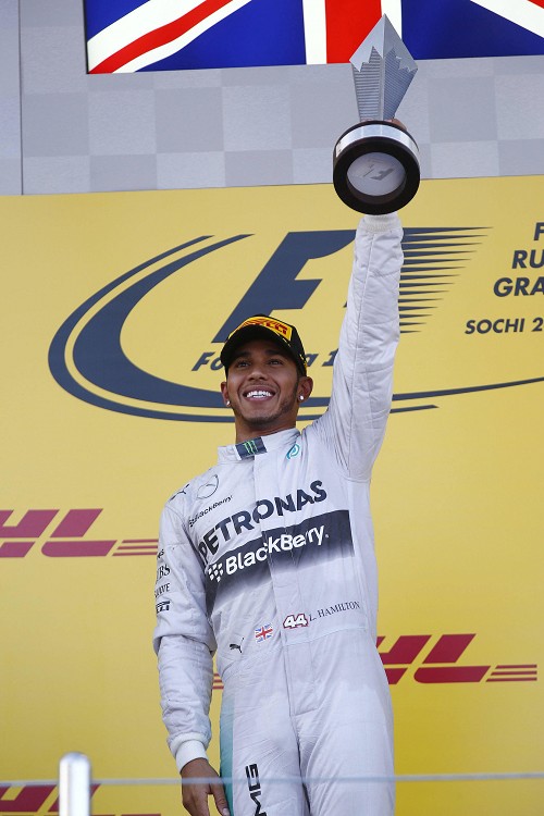 ![]() 相對於Nico Rosberg的開跑問題與後續艱辛戰役,Lewis Hamilton則從開跑後展現相對穩定,從一開始便保持桿位的領先優勢,雖然在後方的Botta在開始的數圈內緊咬著Hamilton,但始終無法拉近距離,並且逐步拉開後方集團差距,最大差距曾一度高達42秒以上,Lewis Hamilton則把握此優勢,力求穩定表現,成功的守住桿位優勢再次上演Pole to Win,並與後方一路披荊斬棘追上第二位的隊友Rosberg再度聯手拿下全新完工首次開跑的Sochi賽道分站冠亞軍,不但創下個人全新賽道紀錄,也為Mercedes車隊過去120年來,穩當拿下首次的車隊世界冠軍,賽季以來第九度的包辦分站冠亞軍,再度創下輝煌歷史。