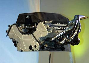 ▲RS22引擎和去年一樣使用大角度的汽缸夾角設計,耐用程度經過改良之後,RENAULT對於這顆引擎賦予相當大的期許跟大家一樣,R202賽車是由去年的B201賽車改良而成,引擎還是保持跟去年一樣的111度汽缸夾角設計,不過他們已經針對去年出現的種種狀況加以改進,以確保耐用性和動力的均衡。