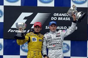 F1大賽近幾年來罕見的混亂場面重現!巴西站因為大雨跑道積水,不僅須由Safety Car帶領起跑,後來更有連續幾輛車失控衝出場的驚險鏡頭出現。比賽最後,JORDAN車隊的Fisichella終於超越了有“冰人”之稱的Raikkonen取得第一位的同時,Webber卻剛好重創護牆使跑道遍佈賽車殘骸,賽會被迫揮出紅旗中止比賽,但Alonso卻隨之高速撞擊路上殘骸而送醫,由於超過規定圈數75%,經過討論,賽會最後將這場比賽的冠軍判定為McLAREN車隊的Raikkonen,使他的領先積分穩居第一!