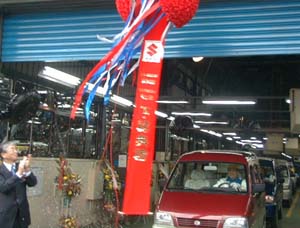 ![]() ▲在現場媒體與廠商的見證下,Every正式揭開上線生產的序幕。兩款車不同的差異點,為該車搭載了SUZUKI之1300c.c鋁合金中置引擎,最大馬力輸出85匹,安全設計部份,打破傳統小型廂型車設計,採用「Semi Cab前伸式車頭」概念之半前車頭訴求,能在發生撞擊時有效延長緩衝距離以提昇安全性,同時Every將其保養室前移至車頭處,打開前車製lash;就能進行基本保養,而前斜造型的特別之處,原廠宣佈該車可有效降低風阻、油耗,並有助於引擎散熱,並提昇行車效率,加上前輪前移的設計,使乘客方便上下。
