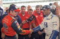 ![]() 27歲的Montoya對於首度試駕過NASCAR之後的感覺是相當興奮,他認為這輛車與他的BMW F1在動力上是不能做比較的,此外,由於車重導致的較長煞車距離也讓他太晚煞車差點錯過彎道。至於31歲的Gordon則對於這輛F1車速與轉向之靈活感到驚異,在出彎時的加速更讓他聯想到四分之一哩的加速賽,幾圈下來他的脖子已經相當疼痛。