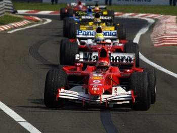 比賽起跑時在第一個彎出現了碰撞意外的場面,導致Red Bull的Klien賽車側翻一圈,幸而無恙,而他的隊友Coulthard稍後也撞上路上脫落的鼻翼而出局。Alonso也在混亂中撞掉了鼻翼緊急搶修,注定在這場比賽失去競爭力,Barrichello同樣是遭到波及的車手落到17位,在匈牙利這個以狹窄多彎及難以超車著稱的跑道上跟在慢車後面跑了許多圈,單圈平均慢了隊友每圈將近5秒。