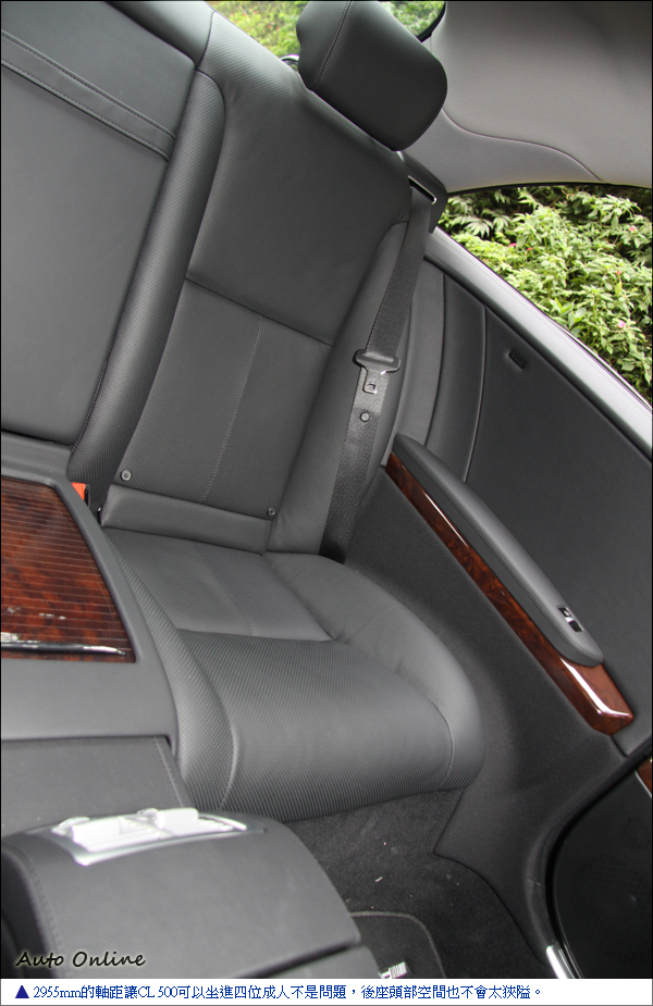 通常雙門轎跑在車身曲線設計的時候為了營造流線性與動感往往會壓縮C柱,因此後座的頭部空間便會顯得較為侷促。但CL 500的後座經由182cm的試車員實坐之後,頭部與膝部都還有約4指幅的空間,是實用的2+2轎跑車。