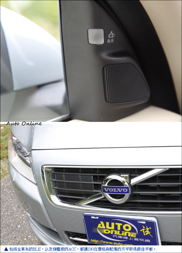 ![]() 毫無疑問,VOLVO的品牌核心價值在於「安全」,因此旗下所有車型都將安全設計視為產品最大特色。而本次的VOLVO S80 T5擁者無懼升級版,同樣貫徹這樣的精神,以豪華版和旗艦版價差20萬來看,兩者主要差異除了音響與鋁圈不同,還是在安全配備的等級上作調整,不過即使是豪華版的安全配備水準也不低,將DSTC動態防滑控制系統、BLIS駕駛視覺盲點資訊系統、ABL主動轉向氣體放電式頭燈、RAB預警煞車系統等,都納入標準配備名單中。