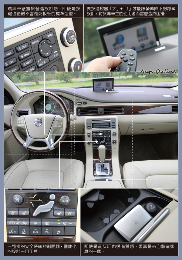 ![]() ▲懸浮式中控台的設計也成了這家車廠的招牌之一,雖然它不一定對實用性有幫助。購買這類進口豪華車的理由,除了享受品牌帶來的身分地位,全面防護的安全設施為駕乘者帶來的安心感,絕對是買家願意多花數倍的錢想要得到的。憑良心講,VOLVO所搭載的各種安全科技並非獨門絕技,事實上德國三大豪華汽車品牌,或是VW、INFINITI等車廠也都同樣擁有類似的技術搭載在它們的部份車型上,不過就連德國ADAC在進行這些新世代先進安全科技的測試後,也不得不認為VOLVO的設計的確優於他們的德國品牌。而對於也曾接觸過各車廠安全科技的我們而言,VOLVO的優點在於這些技術並不需要特別的學習就能輕鬆使用,許多科技除了能夠避免發生碰撞危險,也能時刻提醒讓自己保持良好的駕駛習慣。這或許是原廠在電視廣告中,有別於其他競爭品牌的作法,大膽以女性作為主角的原因之一。