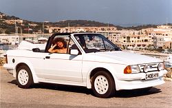 ![]() ▲Escort MK3到了1980年Escort大改款,MK3車型可說是Escort車系中變革最大的一代,不但將驅動方式由後驅改為前驅以及全車獨立懸吊之外,更重要的是首次在量產車型中加入1.6L以及柴油引擎,而全車系更首度採用鋁質汽缸頭的設計;此外,除了原先舊有的2、4門車型外,MK3更是首度開發敞篷車型Escort Cabriolet,MK3一開始並沒有RS車型,但是卻有一款可與當時盛行一時的Golf GTi相提並論的XR3車型,最初XR3提供了96bhp的動力、大型尾翼、前氣壩、跑車胎及通風碟煞等設計,風靡了當代英國的年輕人,隨後又推出了使用電子燃油噴射系統的XR3I,最大馬力達105bhp,但是這樣薄弱的動力仍然無法讓消費者滿意,於是在1983年FORD終於讓RS車系重出江湖,將XR3i加掛渦輪增壓之後命名為RS 1600 Turbo,最大馬力為130bhp,原廠並且加裝了滑差限速器、運動化懸吊以及RECARO的賽車椅,堪稱當代英倫鋼砲亦不為過,可惜RS 1600 Turbo始終沒有正式成為Golf Gti的對手;由於台灣福特自此時改走日系MAZDA路線,因此Escort從MK3開始便沒有在台灣生產,原先的市場由FORD Laser(全壘打)接收。
