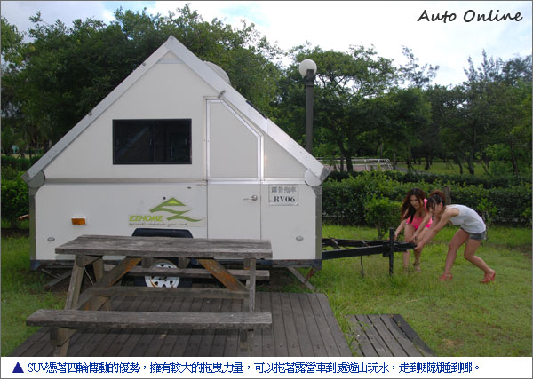 也有人乾脆拖著露營車到處遊山玩水,走到哪就睡到哪,生活好不愜意,這點又是SUV的強項。SUV憑著四輪傳動的優勢,擁有較大的拖曳力量,露營車也就可以選擇設備較為齊全的露營車了。一般車輛因為拖曳力量不足,頂多拖著上半部是帳篷的尾車而已,其設備、空間也就不如SUV所掛著的露營車。
