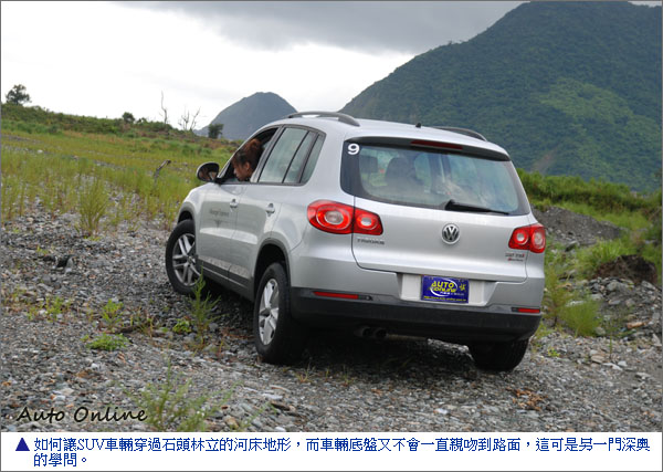 還有一種河床地形,也是在產業道路或是林道常見的一種越野地形。如何讓SUV車輛穿過石頭林立的河床地形,而車輛底盤又不會一直親吻到路面,這可是累積多少的經驗,才有辦法讓SUV不致受傷。