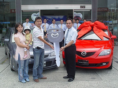MAZDA Taiwan所舉辦的「MAZDA おごって(O-Go-Tte)請客祭 第二彈」於日前抽出最大獎Mazda3 Sport的幸運得主,這位全台首位的Mazda3 Sport車主為南投縣的陳志名先生。陳先生於「MAZDA請客祭」活動期間購買了一輛Isamu Genki,想都想不到居然可以「買一送一」、將最新發表上市的Mazda3 Sport也一起開回家,讓陳先生直說「真是太幸運了!」