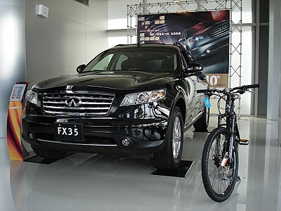 INFINITI FX的性能印象深獲肯定,今年度受邀參加各大自行車賽事,先後成為55自行車日市府繞圈賽、東北角自行車大賽及台中大甲自行車大賽的指定前導車與裁判車,帶領著高速競技的眾家自行車好手,享受極致速度的快意奔馳。Giant此次特別為FX專屬打造兼具時尚造型與登山機能的專屬高級登山自行車,並搭配新上市LED自發光低風阻自行車安全帽,絕無僅有的35組,提供給選購FX車系限量升級版的顧客,藉此鼓勵FX車主迎向夏日艷陽,享受魅力人生!