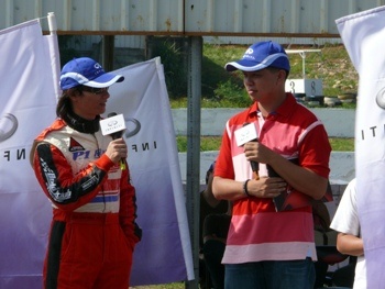 ▲知名車手陳俊杉(左)到場為G Coupe的操控與性能做背書有香車怎能獨漏美人?當天由凱渥名模童怡禎領軍,引領眾家名模以優雅氣質與完美體態,襯托INFINITI G Coupe迷人的簡約時尚美學,同時體驗精緻的日式內裝氛圍,呈現雙門跑車中獨到的經典美感與工藝。但與過去不同的是,此次名模不再只是站在展車旁陪襯,同時也是賽車手的身分,要在賽道上進行一場另類的名模生死鬥,不只體驗INFINITI G Coupe 328匹最大馬力的極致駕馭樂趣,更能比一比哪一雙迷人的長腿才是賽道上真正的肉腳?!