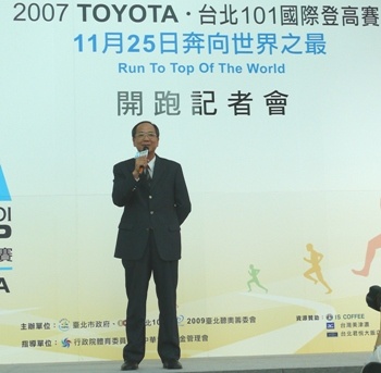 ▲台北101國際登高賽邀請各家好手共襄盛舉2007 TOYOTA 台北101國際登高賽,以「奔向101 讓夢想起飛」為活動主軸,活動內容規劃包括101登高賽事,並結合夢想與公益理念,參賽選手報名費扣除選手個人意外險部分後 ,將全數捐與『財團法人2009台北聽障奧林匹克運動會籌委會基金會』,以鼓勵更多聽障朋友們參與2009年台北國際運動盛事。這些奮發努力向上的聽障選手,是讓夢想起飛的典範,值得各界給予他們最熱情的掌聲。11月18日主辦單位亦將邀集聽障選手舉行試跑活動,讓社會大眾看見他們一步一腳印的毅力。