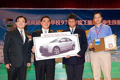 福特六和為培育國內年輕工藝人才,日前(10/25)捐贈一部Ford Focus予「全國高級中等學校97學年度工業類科學生技藝競賽」大會,做為競賽獎勵之獎品。今年的工藝競賽有來自123所學校共計960名學生報名參賽,經過為期5天的激烈競賽,優勝隊伍終於在今天產生了!