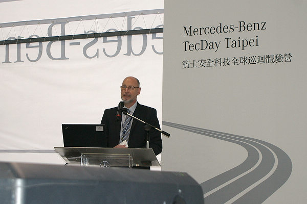 睽違三年的賓士安全科技全球巡迴體驗營再度舉辦!這次北部的朋友們也可以就近前往,因為體驗營的地點就在於中正紀念堂的廣場上。今年的活動內容和以往比較不同的地方,在於是以靜態展示與模擬體驗並行,在賓士原廠汽車主動安全科技暨車輛動力學與能源管理研發總監Thomas Breiting帶領之下,多名講師為來賓親自解說MERCEDES-BENZ在追求汽車安全科技歷程中的努力成果。為了讓參與者更進一步認識車廠在汽車主被動安全科技上的努力,更非常難得地展出ESF 2009實驗車,與其他動態模擬機台搭配。