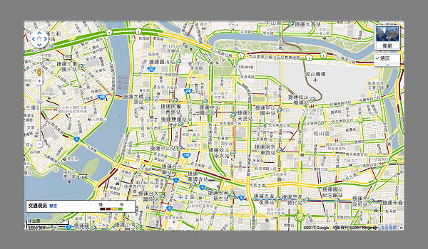 ![]() 為了提供免費、便利且正確的交通路況服務,Google 與台灣勤崴國際科技公司(Kingwaytek)合作,將勤威科技所提供的圖資,以及國道與相關縣市主要道路的流量資訊,整合於Google 地圖中,讓廣大使用者能隨時隨地查詢最即時的交通路況資訊。