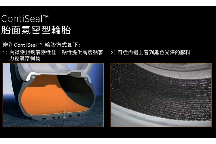 三大創新科技守護安全此外,針對現實生活不同路況考驗,德國馬牌輪胎更創新研發三大安全科技,ContiSealTM 胎面氣密型輪胎、SSR胎邊強化型輪胎、ContiSilentTM 靜音輪胎,給予車主更安全、更舒適的行車體驗: