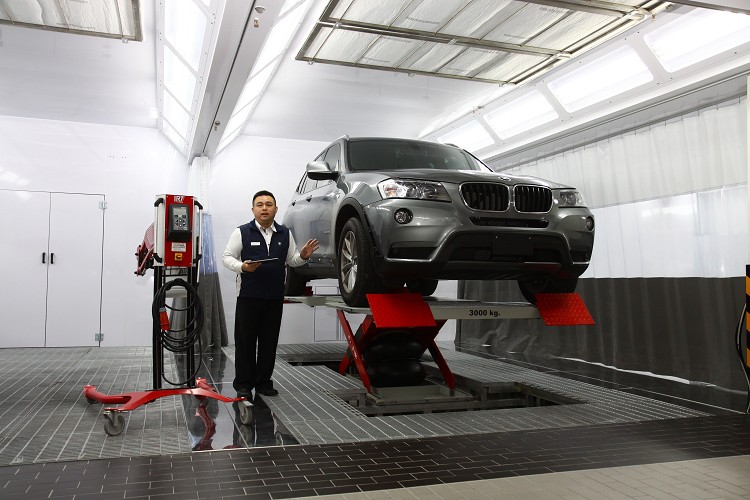 ▲服務人員接車會先與車主做車輛整體確認,除了外觀、內裝、引擎之外,還會將車輛頂起來確定車輛狀態。