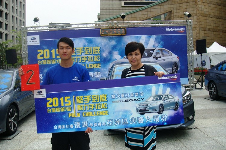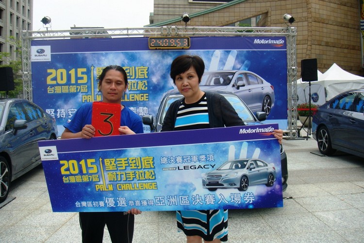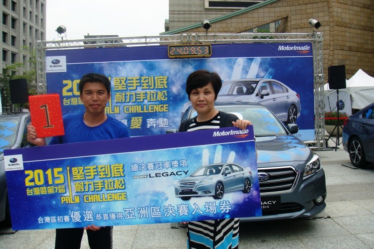 歷經超過整整24小時的艱苦挑戰,第七屆SUBARU台灣「堅手到底 耐力手拉松」挑戰賽比賽結果終於出爐,由背號41號的羅義清擊敗百名選手,以24時09分53秒脫穎而出,一舉拿下今年台灣預賽冠軍,他將可免費攜伴 1 名親友並與其他前十名選手一同前往新加坡參加10月30日的總決賽。