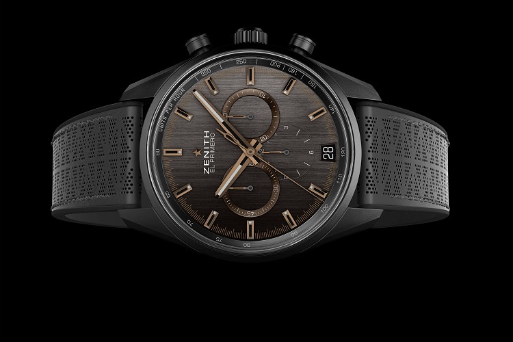 Zenith Chronomaster El Primero Range Rover Velar 由兩大頂尖品牌的設計和技術團隊共同研發。採用 42mm 特製陶瓷化鋁製錶殼,鑲嵌深灰色髮絲紋錶盤輔以銅色細節點綴,透明背殼清晰可見 Range Rover 與 Zenith 雙品牌刻印;錶帶包覆與 Range Rover 內裝座椅相同的深灰色頂級蘇格蘭小牛皮,並施以鑽石紋打孔處理,搭配鈦金屬摺疊式錶扣設計,盡顯極簡設計之美,結合全世界最精準的量產計時機芯 ─ El Primero,完美呼應 New Range Rover Velar 輕量化鋁合金車體的細膩工藝,與優雅簡約的時尚設計風格。