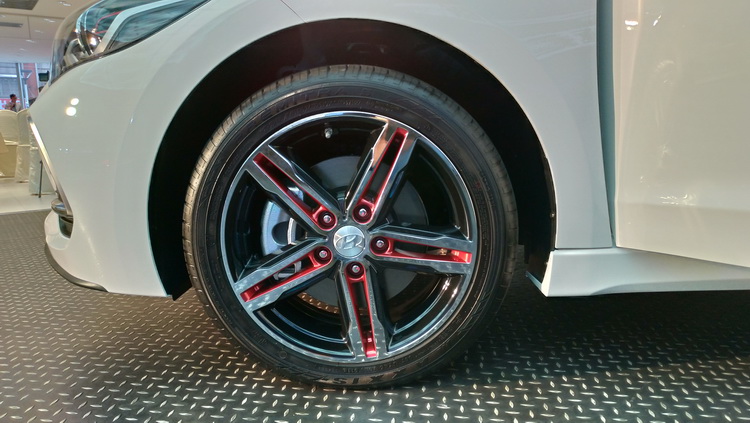 ELANTRA Sport極速黑潮版於車頂、兩側後視鏡罩施予黑色鋼琴烤漆塗裝,搭配專屬的鯊魚鰭飾蓋與擾流尾翼黑潮個性化空力套件,妝點出更為濃烈的車型性格;專屬搭配三色炫彩鍍濺鋁圈,採取獨到的鉻合金離子電鍍工法,令漆面表層具備更優異的耐抗性,強化框體抗腐蝕性並可長保漆面亮澤。