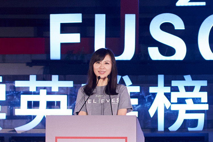 ▲台灣戴姆勒亞洲商車董事長林純姬,熱情歡迎英雄們蒞臨FUSO年度盛事。