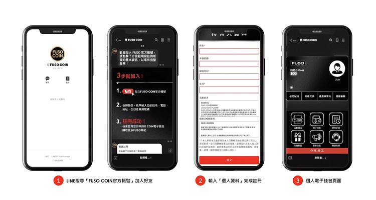 執行長王立山解釋:「從2018年行銷FUSO HERO的概念及精神,這3年來透過FUSO HERO相關活動及營業線的共同經營下,客戶從認同FUSO HERO身分象徵,慢慢匯聚(UNITED)成為一個FUSO 社群;2020年隨著疫情開始,FUSO於是計劃為這個FUSO UNITED社群打造一個數位的溝通平台,並發行其專屬的電子錢包,於是FUSO幣就誕生」,不限車主,只要加入FUSO LINE官方帳號即可獲得100個FUSO幣,FUSO也會不定期於LINE官方帳號與會員互動及提供活動,只要完成任務就可賺取金幣,累積一定的點數即可兌換品牌周邊好禮及保養