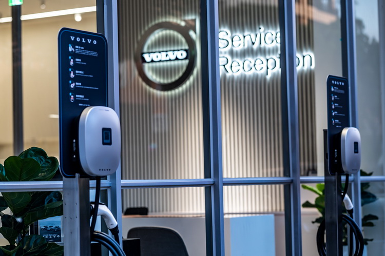展間外觀採用大片落地玻璃窗設計,引領自然光流瀉至展間各隅,構築出廣闊明亮的挑高視野,一樓新車展示區能同時展演 6 台車款,後方亦設置 VOLVO SELEKT 原廠認證中古車展示區,提供消費者更多元的入主選擇。而因應品牌新能源策略,將陸續建構 6 座 AC 充電樁及 1 座雙槍式 DC 充電樁,隨時滿足車主充電需求。維修服務區配備全功能輪胎更換、平衡與定位工作站,共設有 5 個原廠標準的獨立工作位提供保修服務,而為給車主愛車最頂級的呵護,保修完畢後的汽車美容一律使用軟水系統作為洗車水源,並以 40~50 度恆溫熱水高壓水槍及水蒸氣進行手工精緻洗車,讓您的愛車從裡到外常保如新。