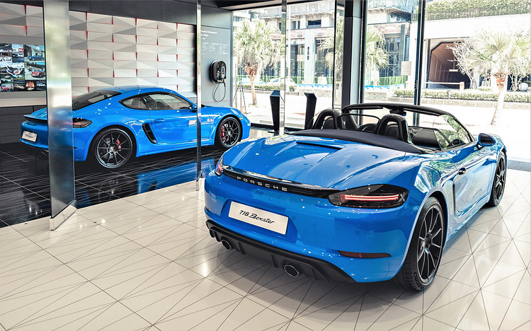 新竹保時捷都會概念店自去年第三季進駐新竹後正式滿周年,特別展出一部限量周年紀念的 Porsche 718 Boxster GTS 4.0,最大亮點在於車身顏色為極具鮮明的搶眼新色青鯊藍 Shark Blue,並配備客製化周年紀念車門檻。