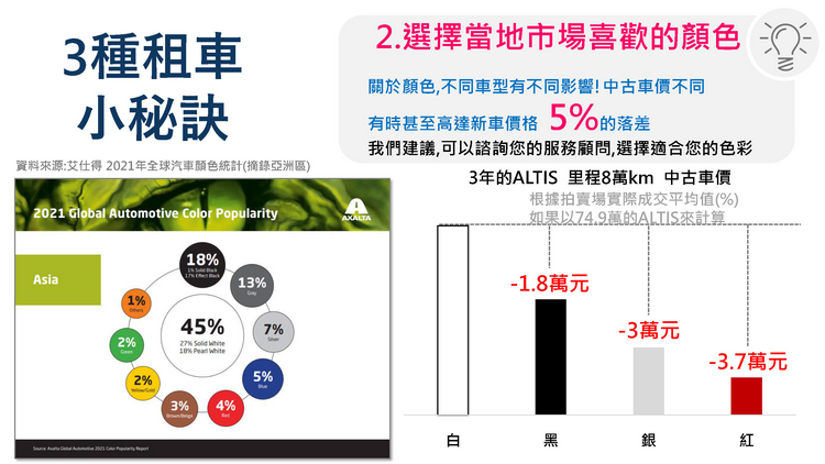 汽車不若房地產具有保值或增值的潛力,資產價值逐年遞減,隨著使用年限增長而產生折舊,將愛車當做資產的觀念已逐漸改變,歐力士租車的個人長租規劃透過「以租代購」的模式讓車主以最經濟的成本享受用車便利性,合約期間還享有全天候客戶服務、保養檢修服務、安心投保方案、出險理賠協助、代步車服務、車籍身分保密….等,無須擔心用車期間所衍伸的疑難雜症,歐力士租車將竭盡所能替車主提供最全面的用車規劃與需求。