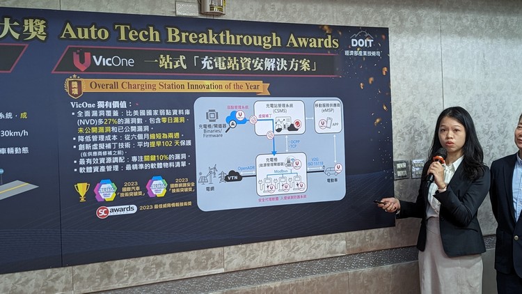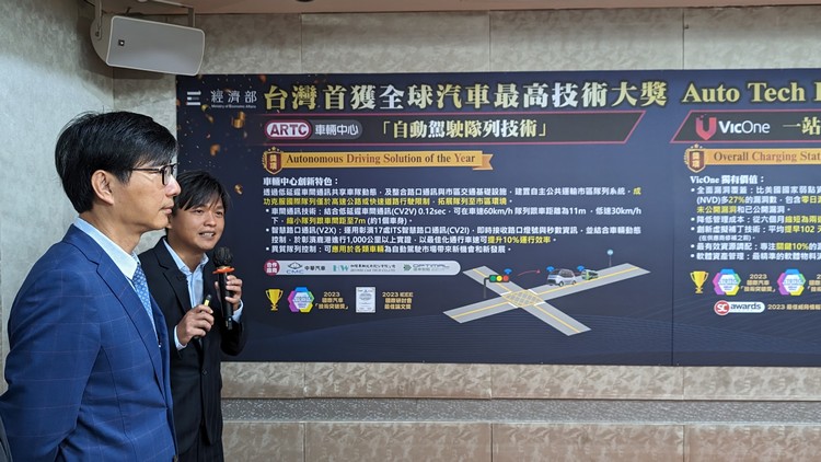 經濟部今(12)日舉辦「臺灣首獲全球最高汽車技術大獎記者會」,宣布財團法人車輛研究測試中心(ARTC)與全球車用資安領導廠商趨勢科技子公司VicOne(維車資安)在國際上有汽車研發界奧斯卡獎之稱的2023 AutoTech Breakthrough Awards,分別獲得了「年度自動駕駛解決方案獎」以及「年度充電站整體創新獎」,此為我國首次獲得此獎項,顯示台灣車輛研發實力已具國際級水準。
