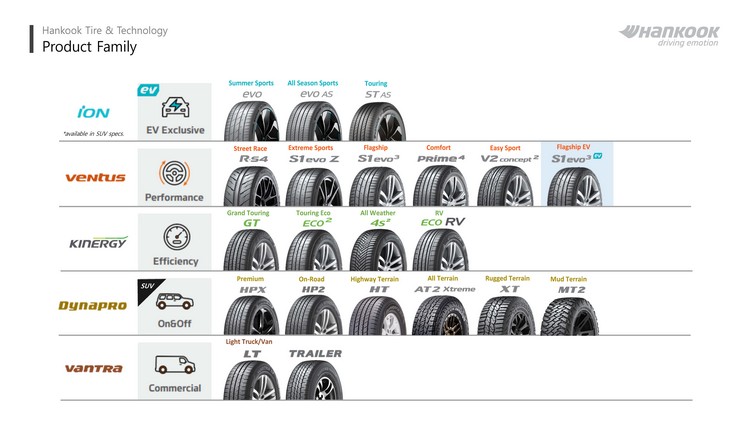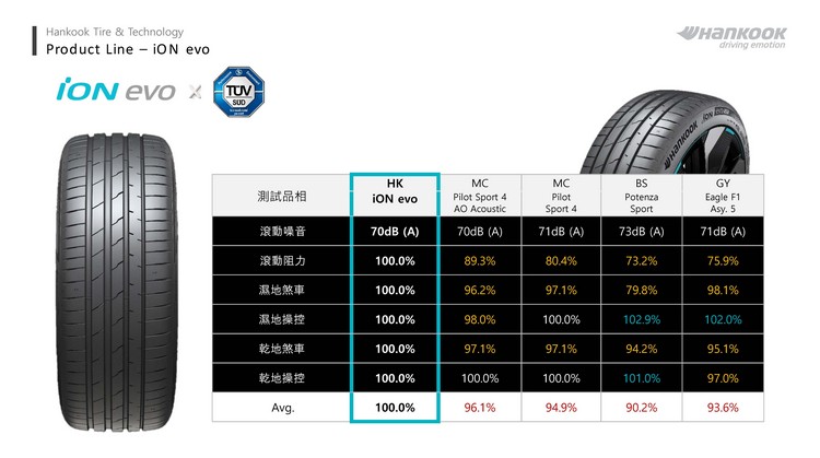 韓泰輪胎成立於1941年,在全球擁有8座工廠及5間研發中心,有自家的Hankook Technodome及亞洲最大試驗場Hankook Technoring進行研發、測試和生產,可應對不同天候、路況及用車條件的產品,從一般汽車的駕馭穩定舒適到競技運動賽事之專用胎都有,可在台灣市場符合消費者各項需求。 韓泰輪胎更在2023年正式成為Formula E電動方程式官方指定獨家輪胎供應商,陸續推出電動車iON,在濕地性能、低噪性能和滾動阻力,在三方面也得到歐盟輪胎標籤最高AAA等級之殊榮,未來進軍電動車用胎,車主可以用更合理價格體驗高品質的輪胎。