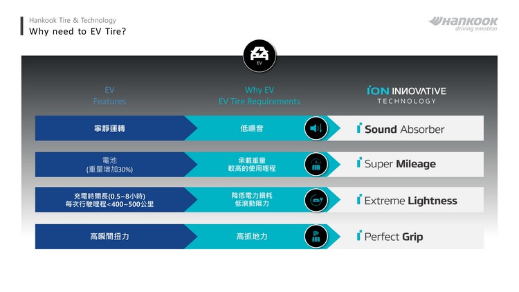 電車專用胎iON evo與iON evo SUV,除了讓駕駛在操控上更能掌握,在車內感受寧靜之外,對於馳騁中的節電也有所幫助。