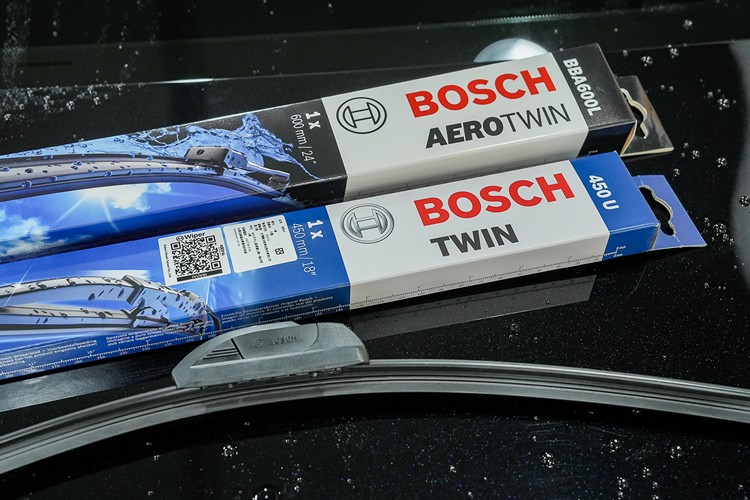 ▲Bosch雨刷標榜以石墨為材質,沒有矽膠雨刷撥水劑炫光跳動的缺點,可確保雨滴不會形成水珠維持清晰。