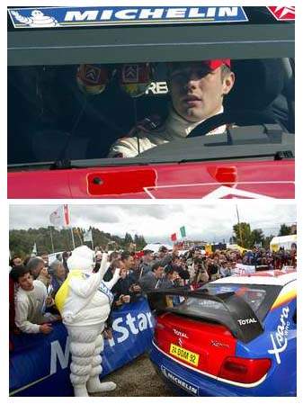 2004年的WRC越野賽車年度總冠軍Sebastien Leob,在1月21-23日的蒙地卡羅站比賽的前夕,於1月7日訪問米其林集團總部Clermont-Ferrand。1月7日當天上午,Leob先前往Michelin賽車輪胎製造廠與拉度Ladoux測試中心,完成Citroen Xsara WRC賽前的調校和測試。接著與1906年於義大利Milan設立的米其林輪胎製造研究中心連線,完成部份賽前的調校和技術交流。Leob當場表示,米其林橡膠技術研究的領先,是能夠贏得WRC年度越野賽車總冠軍的主要關鍵。