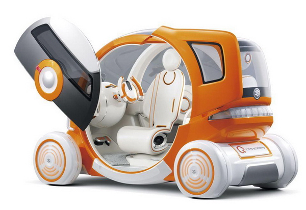 雙人座迷你電動車Q-Concept是一部定位於傳統四輪車與二輪車之間位置的日常生活圈移動用車。車身到處都是圓與盤狀的設計,看起來十分「卡哇依」。嬌小的車身全長只有2500mm,加上雙人座是前後排列所以車寬也縮到只有1300mm。好處就是所需的停車空間只有一般車子的三分之一,在道路與空間狹小擁擠的大都會區中可以很輕鬆的穿梭與停車。