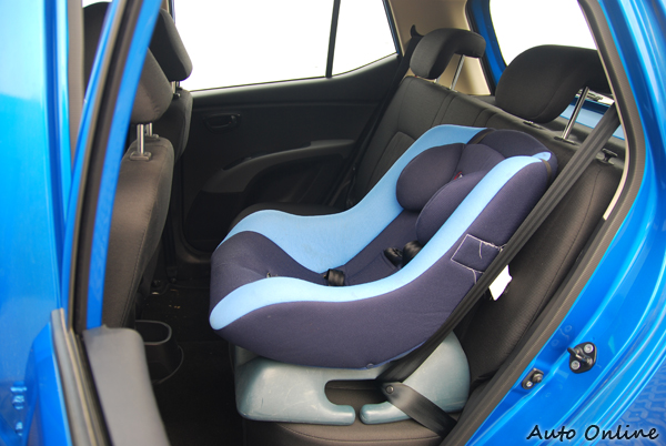 ▲i10後座放上一張兒童安全座椅後的空間示意圖。
