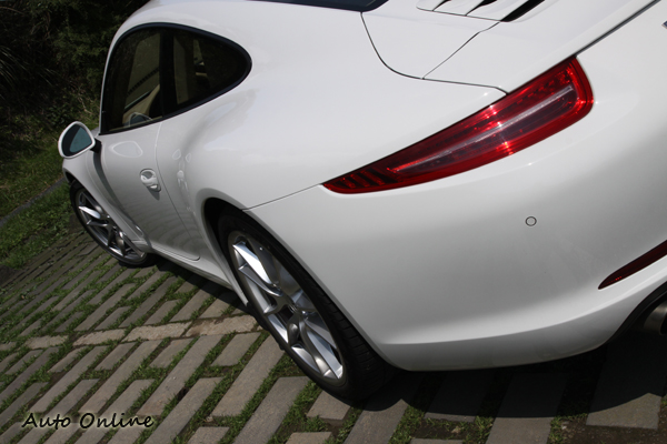 ▲Porsche 911 Carrera S(Type 991)加寬前輪輪距,並裝上比GT3還要寬的前輪尺寸,991搭載245/35ZR20前輪規格,GT3前輪規格為235/35ZR19。