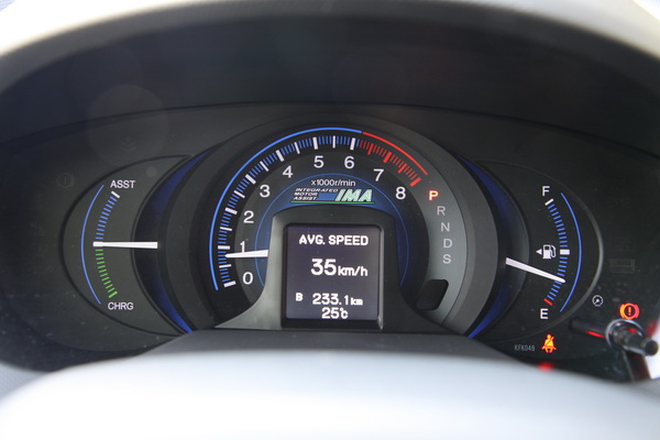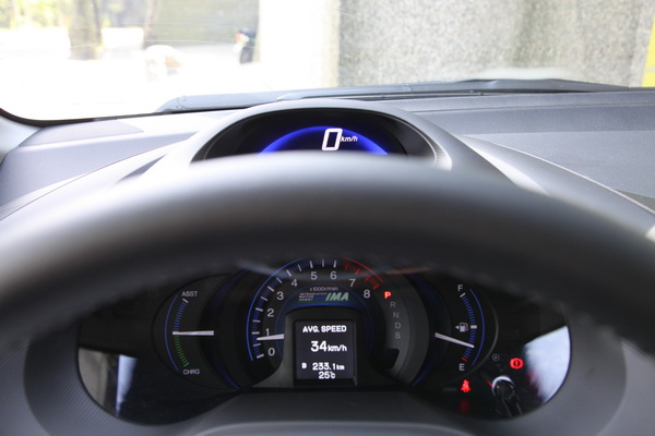 座艙內,中控台散發出科技感,兩層式設計的儀表板,上層為時速、下層為引擎轉速、油量以及電動馬達作動情況,下層儀表板中間有多功能顯示螢幕,可以顯示目前電動馬達與引擎狀態以及Eco Assist節能輔助系統狀態。但比較可惜的事方向盤與時速表會相互遮蔽,如果駕駛想要看到時速表會發現方向盤太低導致離雙腿太近,但如果方向盤調整為正確的坐姿又會遮蔽時速表而判別不易,處於一種兩難的狀況。