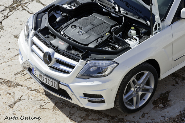 改款GLK承接了M-Class的引擎與驅動系統,從GLK 250 BlueTEC 4MATIC的直列四缸柴油引擎,具有150kW(204hp)的最大馬力與500Nm的扭力,這顆排氣量2143cc的柴油引擎經過不同調校,衍生很多款引擎,以GLK250為例,平均耗油量每百公里僅須6.1到6.5公升的柴油,動力強勁又省油。二氧化碳排放也僅143 – 147gCO2/km (NEDC混合模式)