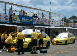 今天進行各組的預賽,divison1 2.0組的成績出現果然不出大家所見,排位第一由EKS車隊的關兆昌取得,第二位也一樣是由另一部BMW SCHNITZER。在競爭激烈的divison2 1.6組,在眾多的冠軍手中,由香港N1 AUTO MECHANIC車隊的盧文康奪得,該隊隊長羅文成客氣的表示都歸叫lash;於技師趙成赫,這位韓國籍的技師,卻表示是全部機件的整體調教及匹配得宜才會有如此好的成績。而這部排位第一的EK4到底有哪些改裝的祕密呢??嘿嘿...HONDA B16B引擎,AP 四活塞雙總泵煞車,MUGEN懸吊系統,MUGEN賽車可程式電腦....。相當年輕且客氣的組合,深信該隊隊長所言不假,年輕又團結,是車隊能獲佳績的不二法門之一。而國內的賽車好手格立特陳裕益更在眾冠軍好手中暫排第五,而這個成績秒數是比連lash;多divison1賽車更快的,期望明天國內好手能有好的表現。