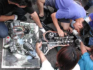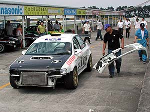 黃祥益的座駕經過緊急搶修,將整顆變速箱從底盤卸下,以最快的速度通通拆光光,確定二檔齒輪已經崩牙無法使用。無備用強化齒輪可換之下,斧底抽薪之計就是將二檔齒輪全部敲下刮平,避免碎齒輪再度飛出,影響變速箱正常運作,並以1、3、4檔繼續參賽。沒二檔其實很拼阿!無限改裝組的動力都很強,過髮夾彎都不降一檔,直接以二檔出彎。不過只要能上場,就有機會拿到積分。