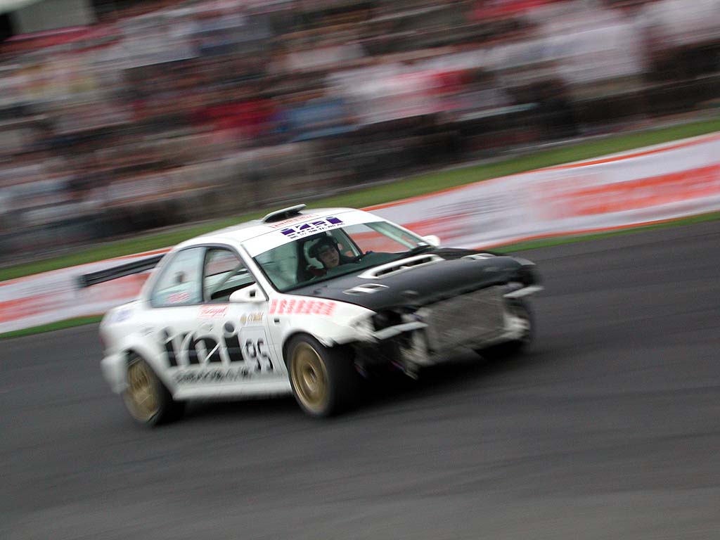 方志鵬多次想利用耶穌彎及髮夾彎內側突圍,不過方志鵬也有忌諱,車頭少了保險桿,若有任何碰撞就會傷及進氣冷卻器,不可大意。追逐戰持續好幾圈,洪欽煌的抗壓力還真強。說時遲、那時快,洪欽煌出S彎道時速度過快,右後輪滑出賽道壓到砂石地發生空轉打滑,而且這種情況整好發生在洪欽煌出彎加速瞬間,加速力道爆發之後,後輪甩尾幅度相當驚人,車頭瞬間朝向彎道內側以45度的姿勢直衝內側牆,洪欽煌趕緊煞車救了人車兩命,煞車痕拖行數公尺,險些撞牆。如果洪欽煌的車輛有裝置後輪LSD應可避免單邊輪胎空轉的問題。