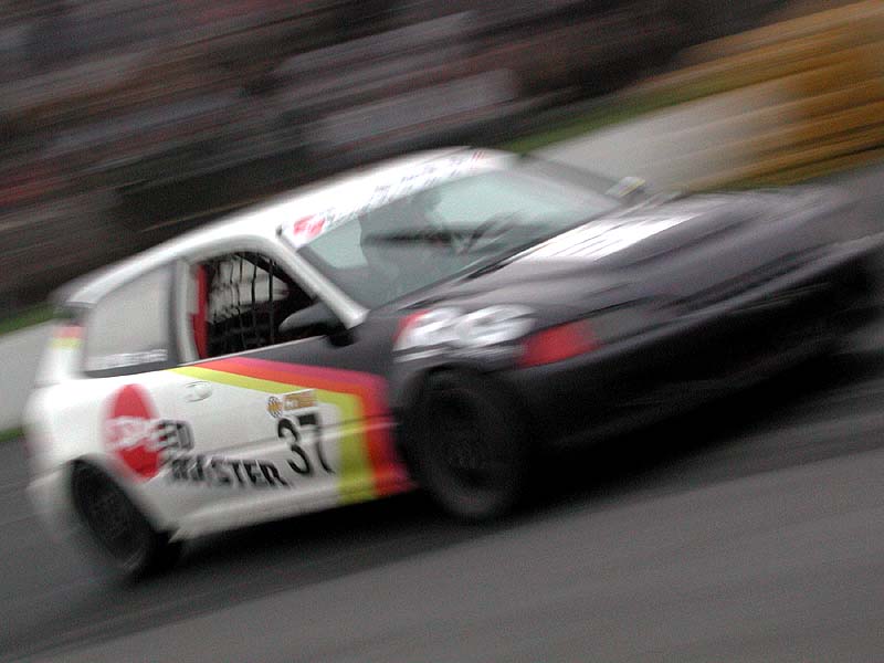 可能又會下雨,大家都很耽心。時間是六點十分,五分鐘牌舉出!天色逐漸昏暗,沒有裝車燈的車恐怕…。 溫胎時,羅紀竣退出,回PIT。 燈號亮起,在第一個彎道上,陳文閣在搶路中滑開,大家在耶穌彎中撞成一團,大家重新洗牌,前三位是黃祥益、趙敦雄.陳裕益、盧政義。第六圈中,盧政義上到第三,格立特的陳裕益退守第四。 趙敦雄今天在決賽的第九圈做出1:02.714的成績。 第十二圈結束,進入直線前,盧政義車出狀況,讓過陳裕益,耶穌彎前,再讓過蘇豐建和陸昌明,一路退到第六位。看來無力可回天。此時,陳裕益受到蘇豐建的壓力,進入第十五圈,兩車秒差0.3秒。一二名在第十六圈時秒差0.4。精采,但是比賽近結束,不太容易產生新的變化。終場:黃祥益、趙敦雄、陳裕益、蘇豐建。