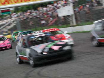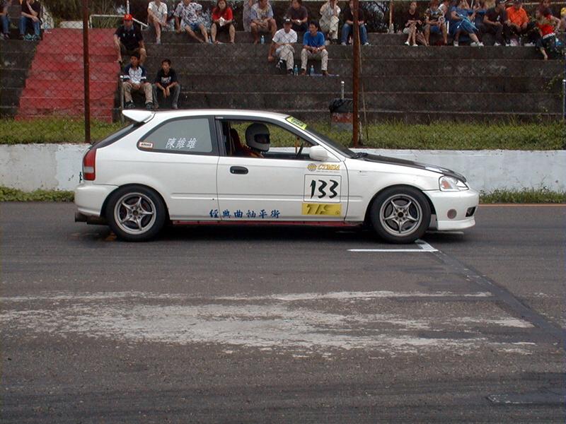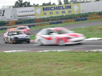 ![]() 由於參賽車子眾多,所有能進入決賽的車手無不滿心等待下午決賽的到來。當選手完成暖胎圈到指定位置預起跑待命後,封閉跑道紅燈熄滅,所有車手加足馬力衝出,排位桿位的133號經馬車隊林維雄即率先衝出搶到內線,形成領先獨走的局面,但是在排位第二的191號ARLE威雷車隊的林文俊後面,一開始即形成一長串車陣,競爭相當激烈。