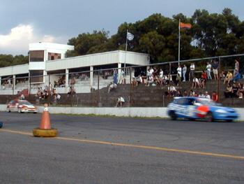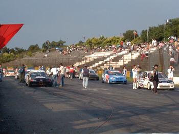 CLASS I無限改裝組決賽車輛10輛![]() ▲陳裕益緊追黃祥益在CLASS II A組完賽之後,隨之而來的是CLASS I無限改裝組的競賽,車手完成暖胎圈之後在起跑線等待起跑。紅燈號一熄滅,桿位1號中國石油國光車隊施世偉立刻表現一個漂亮的防守,守住第一位,宿敵上站冠軍37號同和趙敦雄還是暫時屈居第二伺機搶攻,而18號SRR車隊陳軍華第三,但是可能是暖胎不夠,陳軍華車輛突然在髮夾彎失控滑進土堆,瞬間排位落至最後,同隊13號黃祥益立刻進位到第3,而本站測時賽成績排位第7的3號格立特車隊陳裕益,也從後面挺進,此時排位居第4並緊追黃祥益。