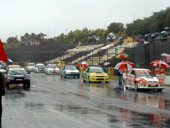 B組參賽車輛眾多車手相互競爭力大,雨中參賽搏命演出,場中打滑連連。