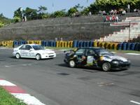 ![]() 15號雷力車隊朱春華踏著路沿石,很勉強的超過蘇怡誠。到第十六圈中,謝宜佑再度攻克第三位,此後,兩位車手互有領先。朱春華一再向前,緊隨第一的李進武,伺機進攻,到十九圈,李進武失守,朱春華上到第一位。終場,15號雷力車隊朱春華得第一位,82號宏泰車隊的李進武以四分之一車身的優勢取得第二,102號新瑞隆車隊蘇怡誠以微差,退居第三。