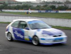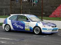 ![]() CLASS II A組參賽車輛數為八輛,雖然車少,但是車手間競爭情形可不因為車輛少而降低,本站測時賽PP由45號精輪車隊林聖惟獲得,其居然做出一分五秒以下的成績,就單以HONDA CIVIC SOHC單凸輪軸引擎改裝後參賽,成績就能直逼許多無限改裝組DOHC引擎,由此可證CIVIC SOHC的調教空間是相當大。第二位由25號摩里士仟達車隊郭國信獲得,第三位由75號P&P車隊黃之平獲得。