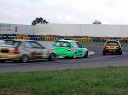 ![]() ▲過此彎最快的路線是壓過路沿石貼近圍牆邊嚴重破壞草皮!比賽進行到第六圈時,75號P&P車隊黃之平突然不知何故放慢了速度下來,此時171號同和車隊黃御唐立即取代第二位的地位,但是隨後的79號宏冠車隊陳春長卻沒有得到這個機會搶位,75號P&P車隊黃之平立刻恢復正常隨即加入戰局暫據第三。至於101號永業雪鐵龍車隊的盧政義SAXO戰車,因為先天調校的問題,後輪無法做角度,因此過彎就是沒有其他喜美快,落在倒數第二。