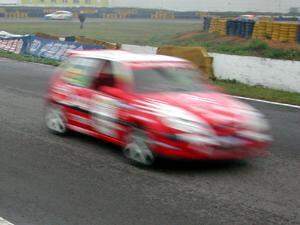 ![]() 比賽進行到第12圈,前三名依舊是黃之平、郭國信、黃御唐,三輛車都保持在2.8秒的差距,而老將101號永業雪鐵龍盧政義成績不理想落居第五位,51號凌速車隊李家成則因為底盤敲擊到路面,致使油底殼破裂因此無法完賽。